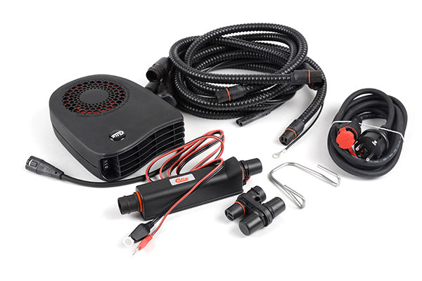 Waveline 1700W komfortsatsen innehåller det som behövs för en förvärmd fordonskupé. Lägg till fordonsspecifik motorvärmare och monteringssats för ett komplett elektriskt bilvärmesystem. Kupévärmaren i komfortsatsen har den lilla kupékontakten och kräver därför ingen extra montering av kupéuttag (KVU303). Komfortsatsen tillsammans med motorvärmare (normalt ca 500 W för en personbil) kräver minst 6A säkring i eluttaget med 230V.